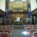 The main body of the church is rowed seating (individual chairs for approx. 90); Carpeted floor; Access to organ or electronic piano; Projection from computer source; Fixed and roving microphones; CD Player; Sanctuary can be cleared for large choirs/bands. Gallery seating also available; Heating by arrangement. Rental £37.00 per hour.